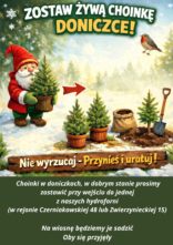 Szanowni Mieszkańcy, Zachęcamy do do pozostawiania żywych choinek w doniczkach przed wejściem jednej z naszych hydroforni. Na wiosnę będziemy je sadzić.